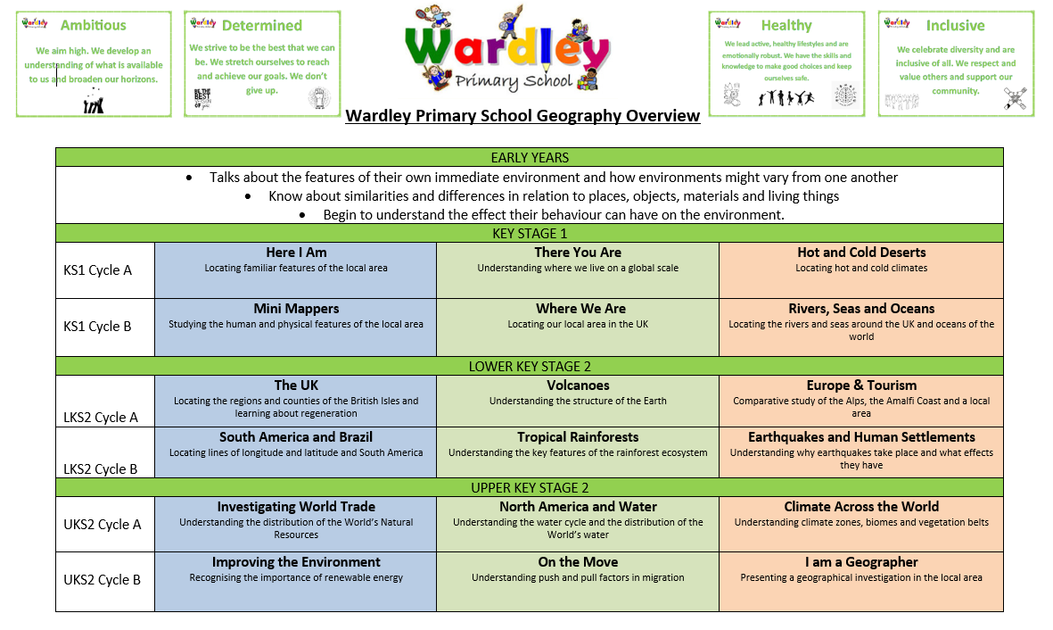 During a child’s education at Wardley Primary, we hope that geography shall stimulate an interest in and a sense of wonder about places and give them the lasting awareness of the local area, the wider world and its people.
