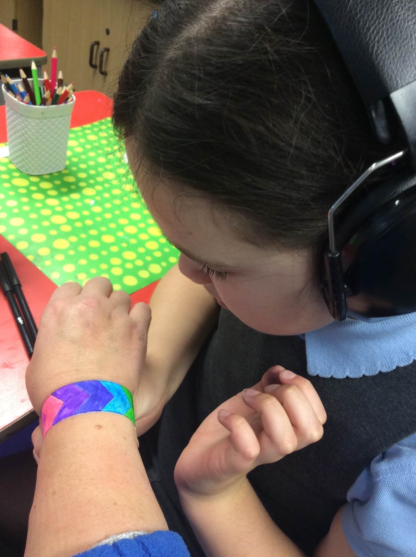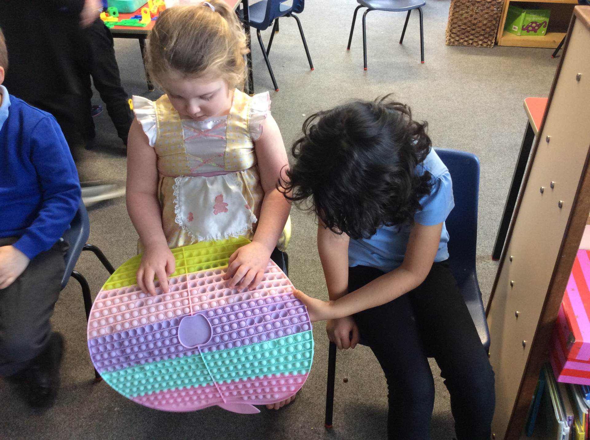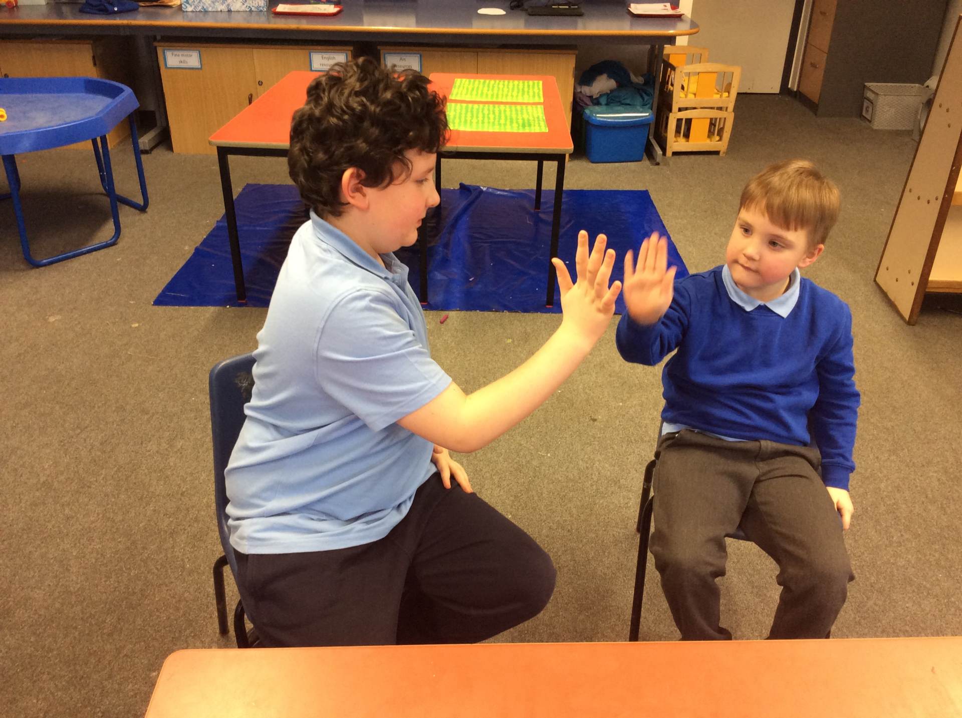 Next, we thought about our class and the friends we have made. All of the children made a self-portrait which will be displayed as part of a class mosaic to remind us that, although we are all individuals, we belong to one class. We made friendship cards and bracelets for our friends. We enjoyed working together and playing alongside each other to make models, to share books and to play games.