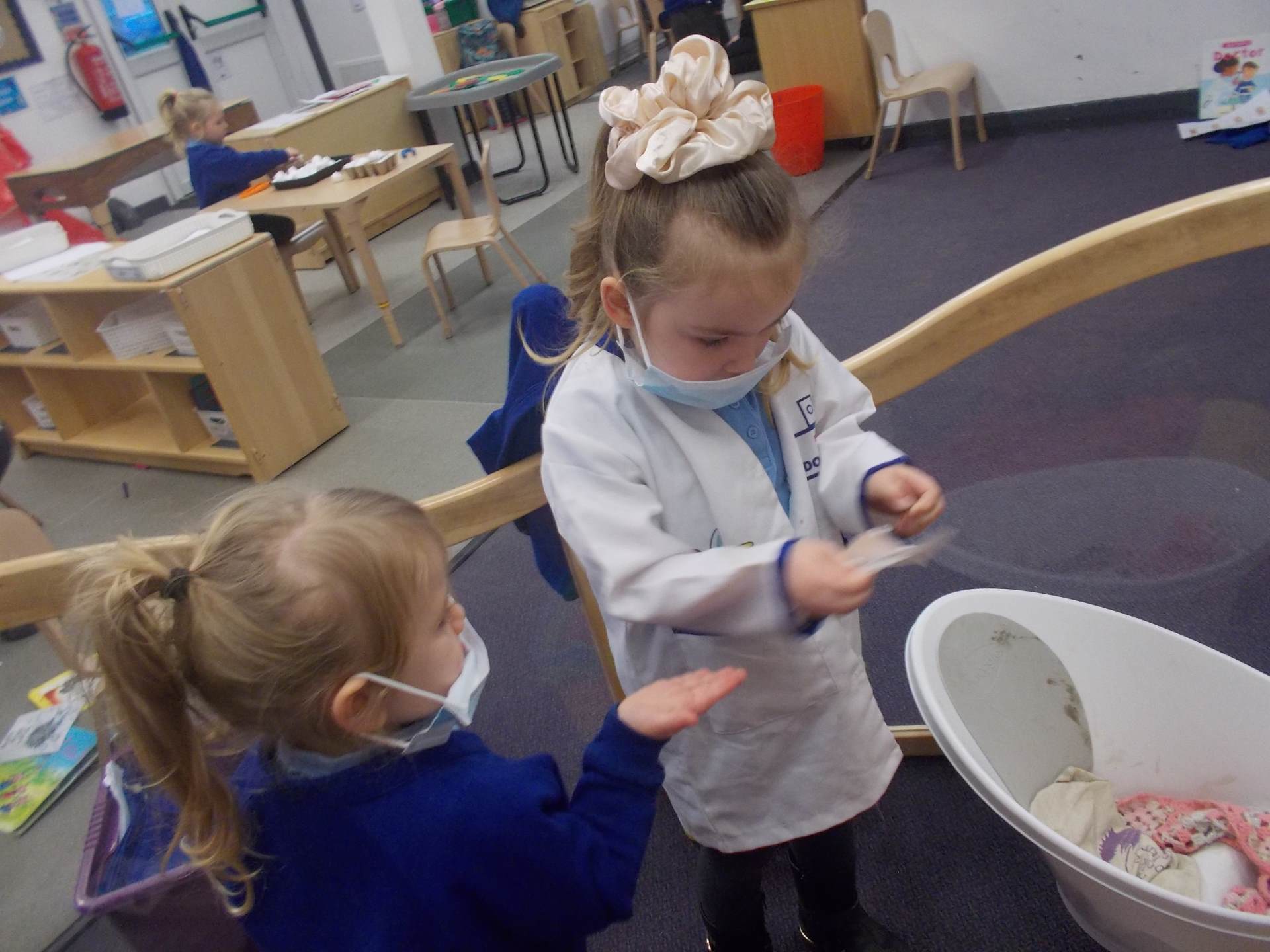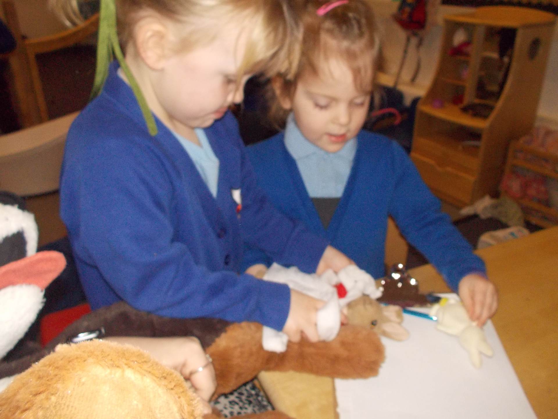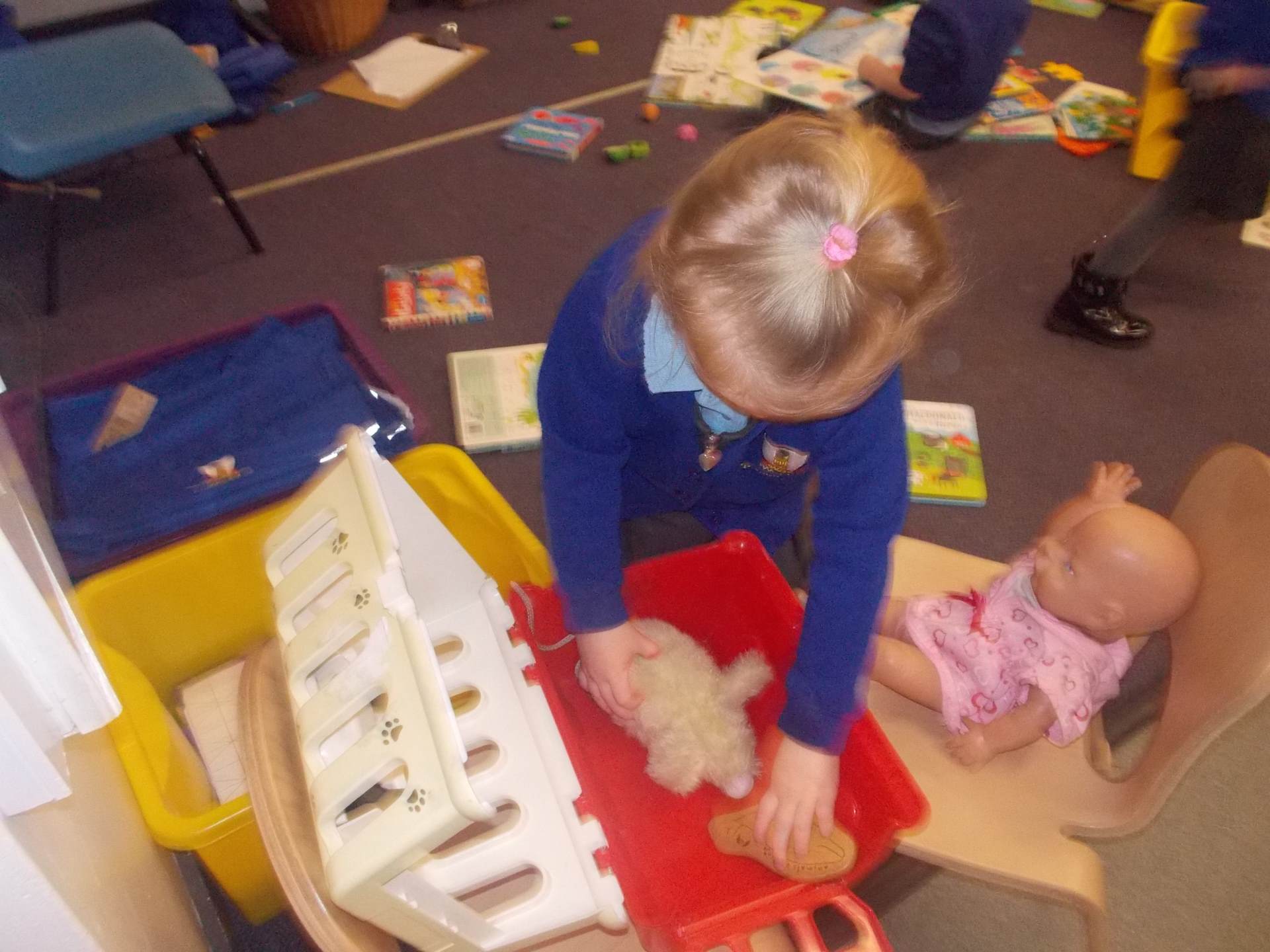 We discovered how vets care for animals. The children loved pretending to treat pets in our veterinary surgery, checking heartbeats and giving lots of gentle care to the soft toy animals.