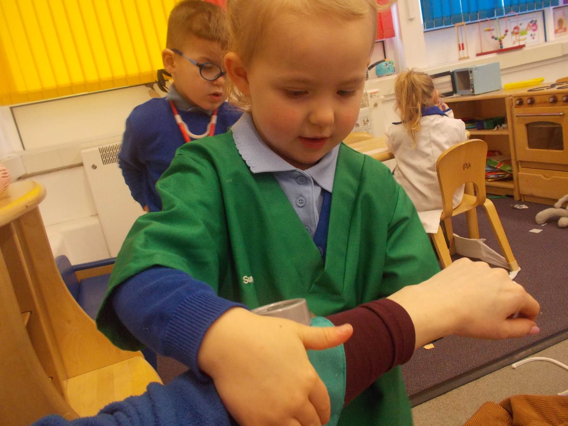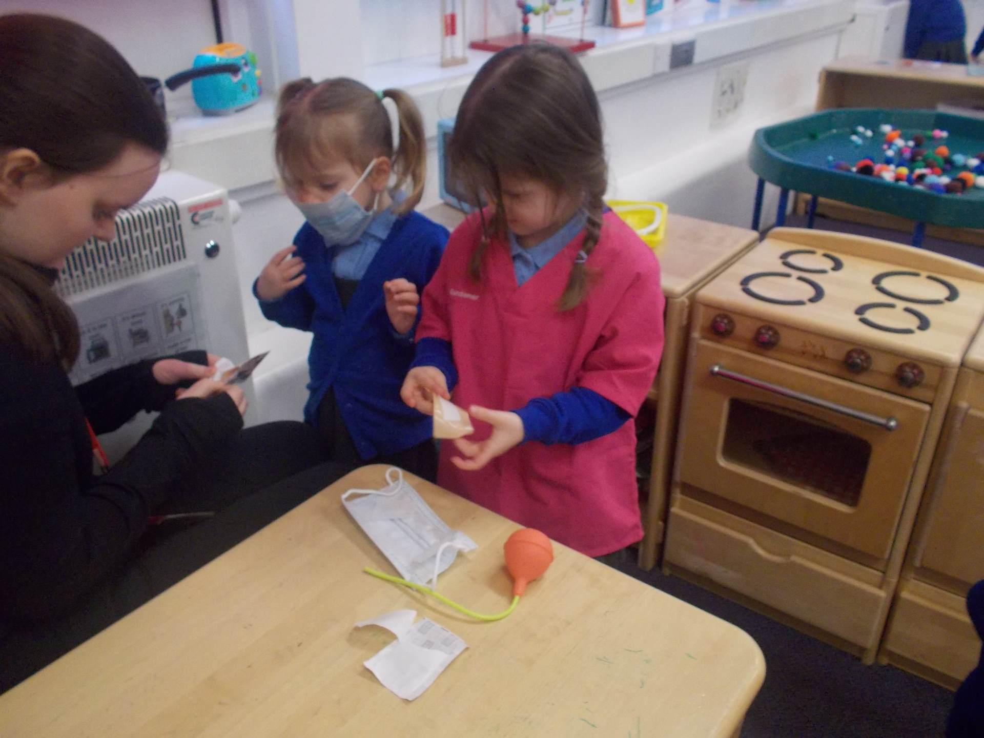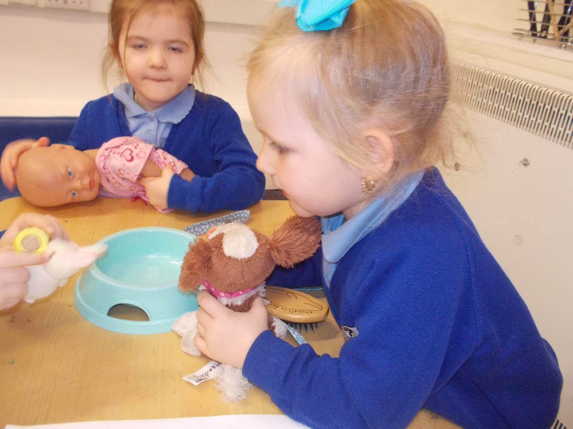 We discovered how vets care for animals. The children loved pretending to treat pets in our veterinary surgery, checking heartbeats and giving lots of gentle care to the soft toy animals.