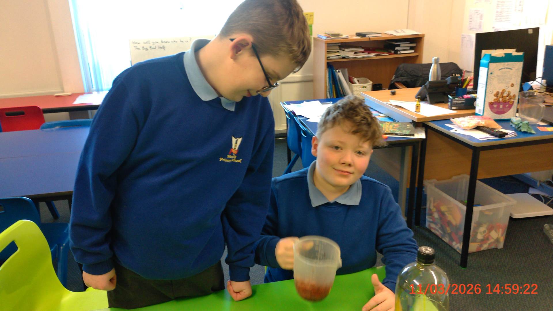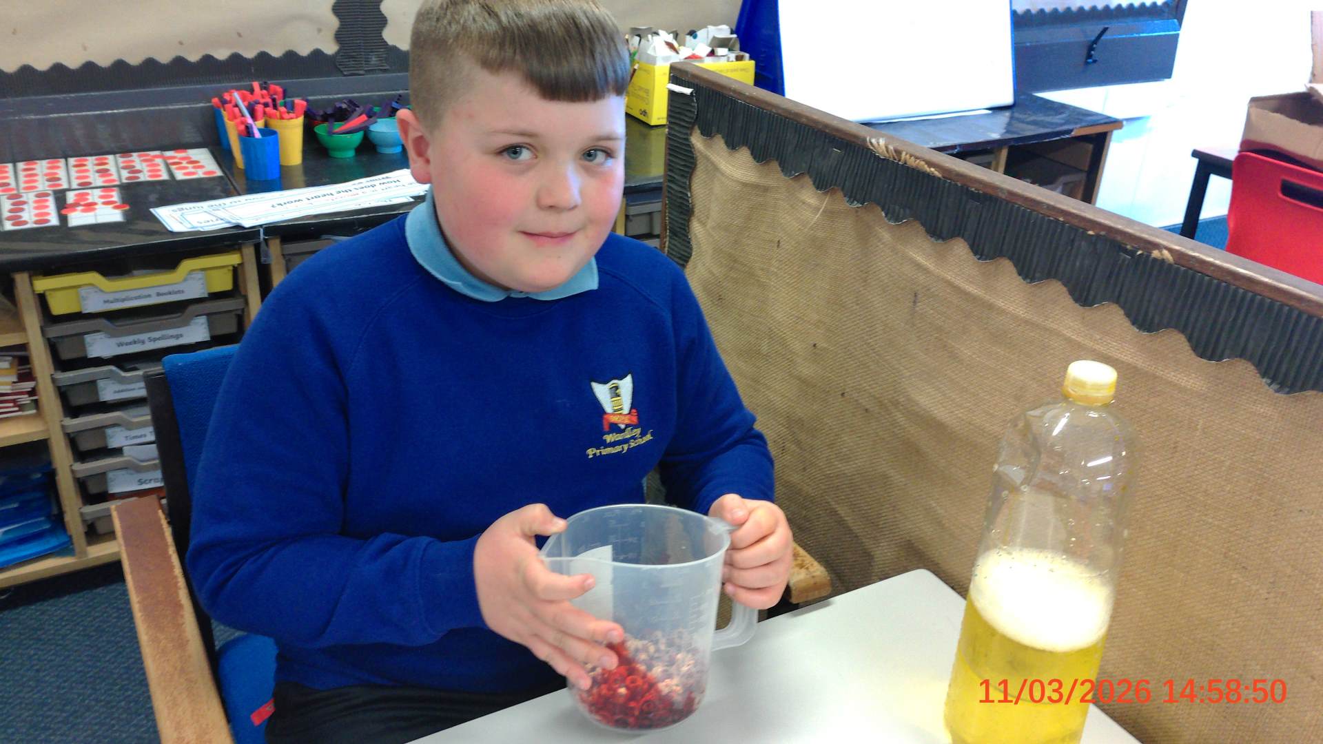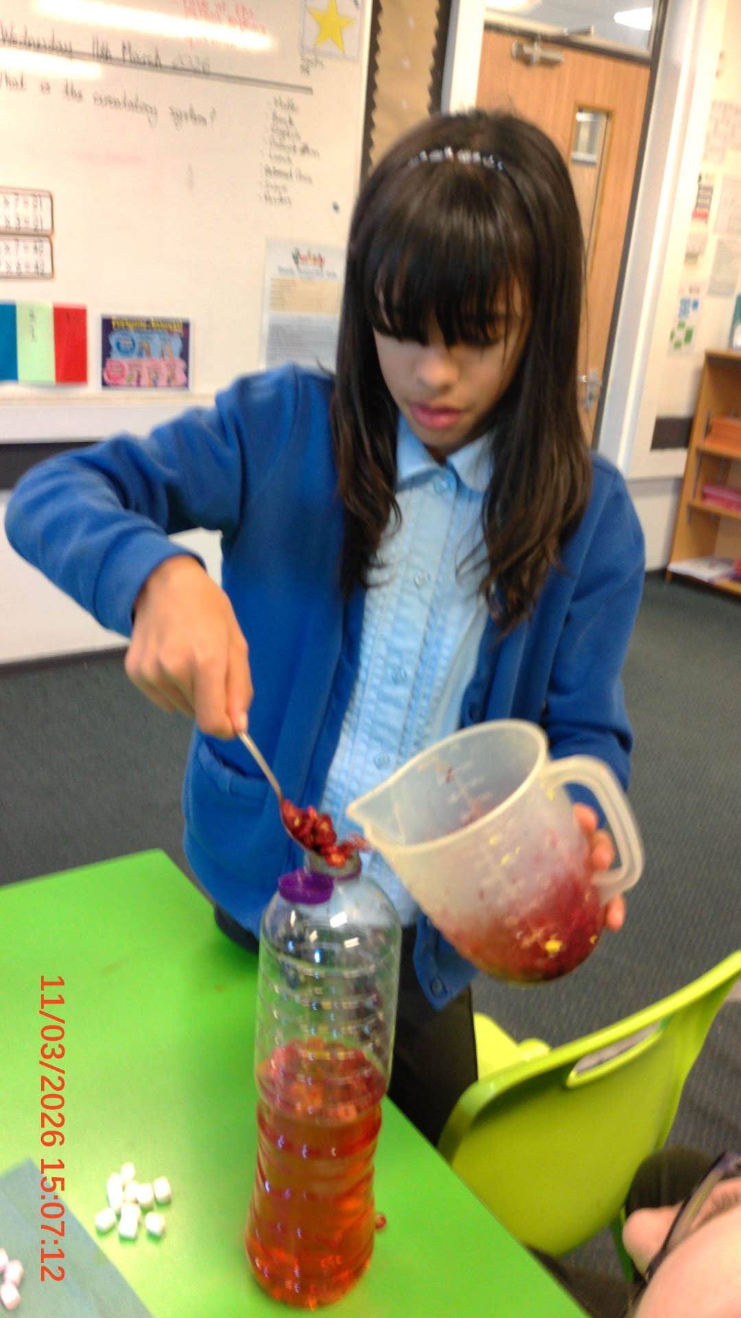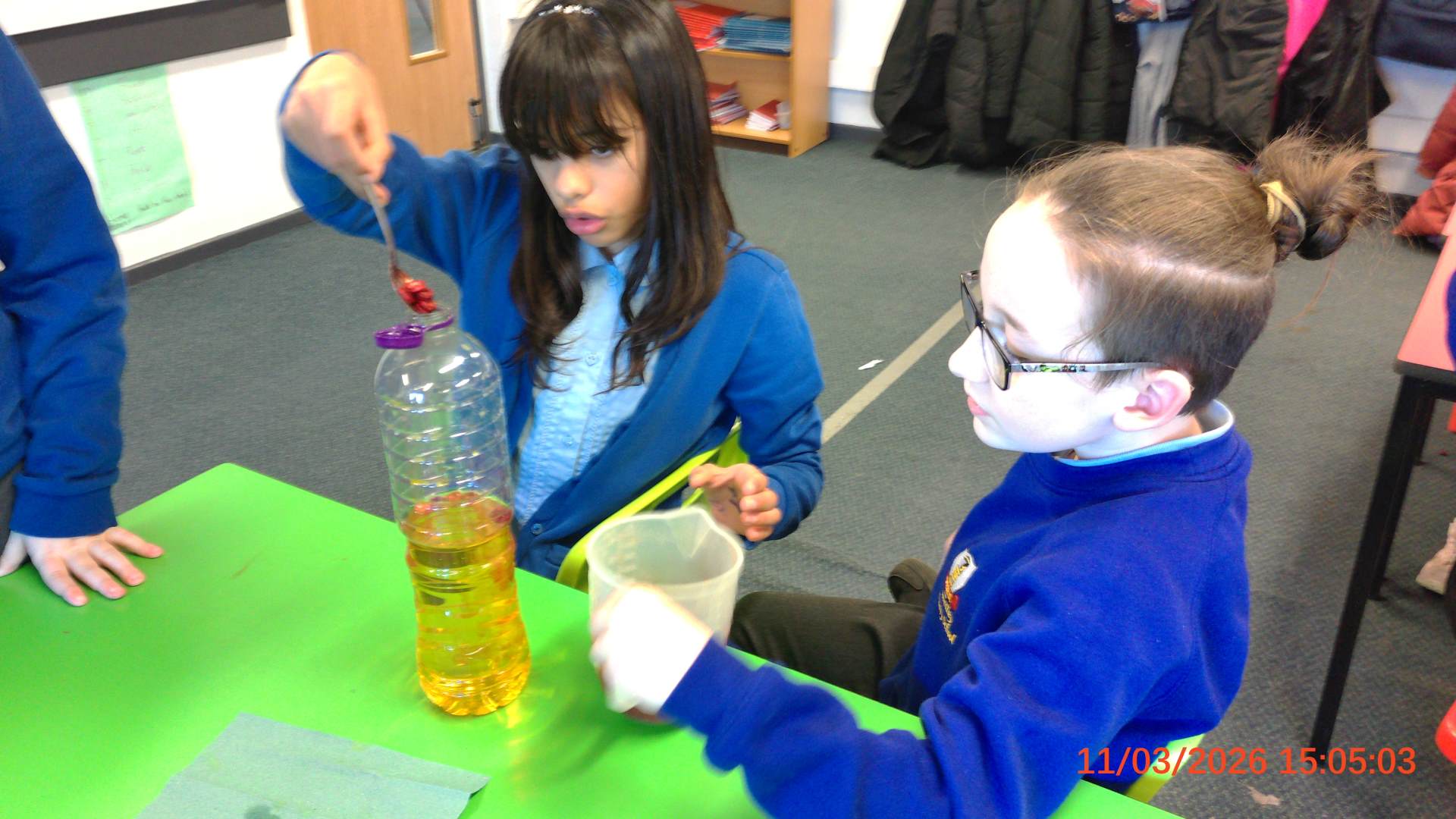 They used everyday household items to make a scientific model of what blood consists of.